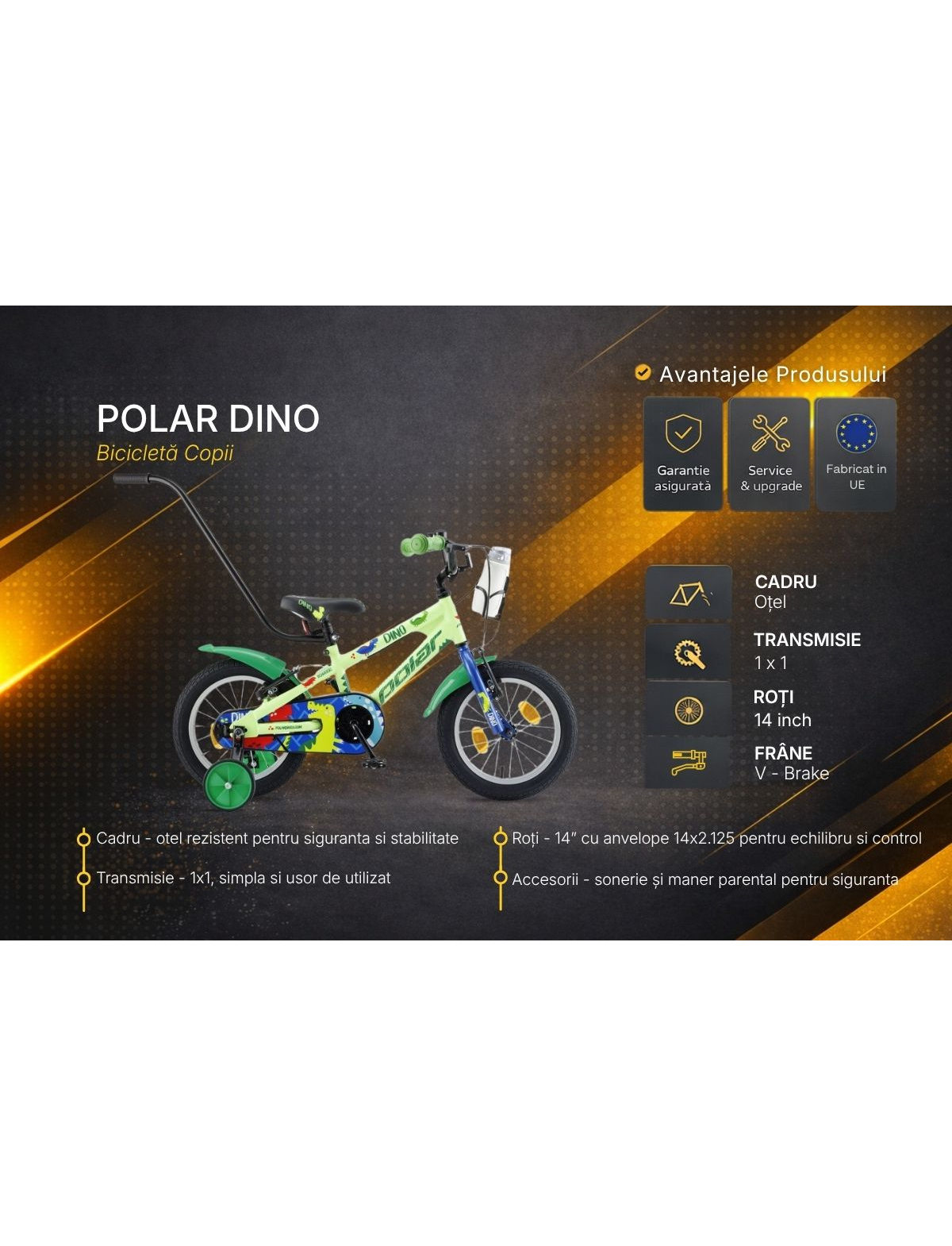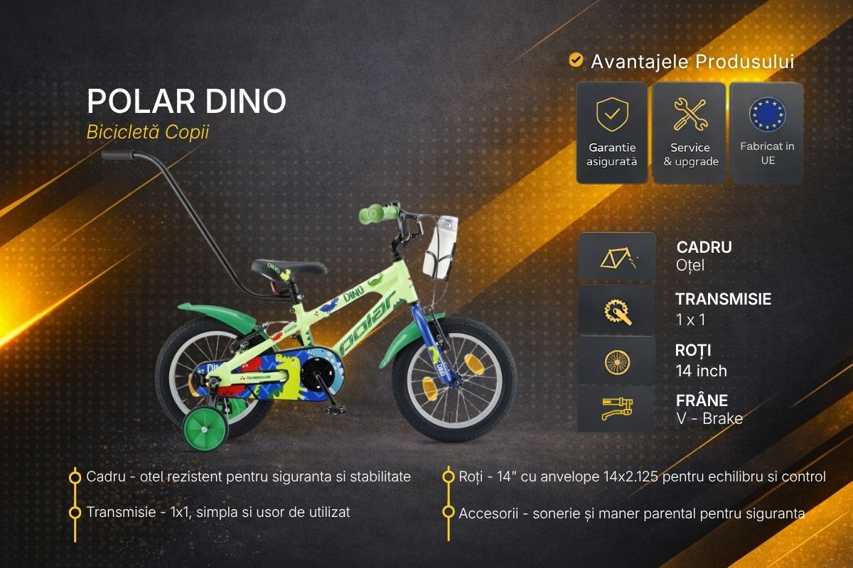 De ce sa alegi Bicicleta Copii Polar Dino 14 Inch?