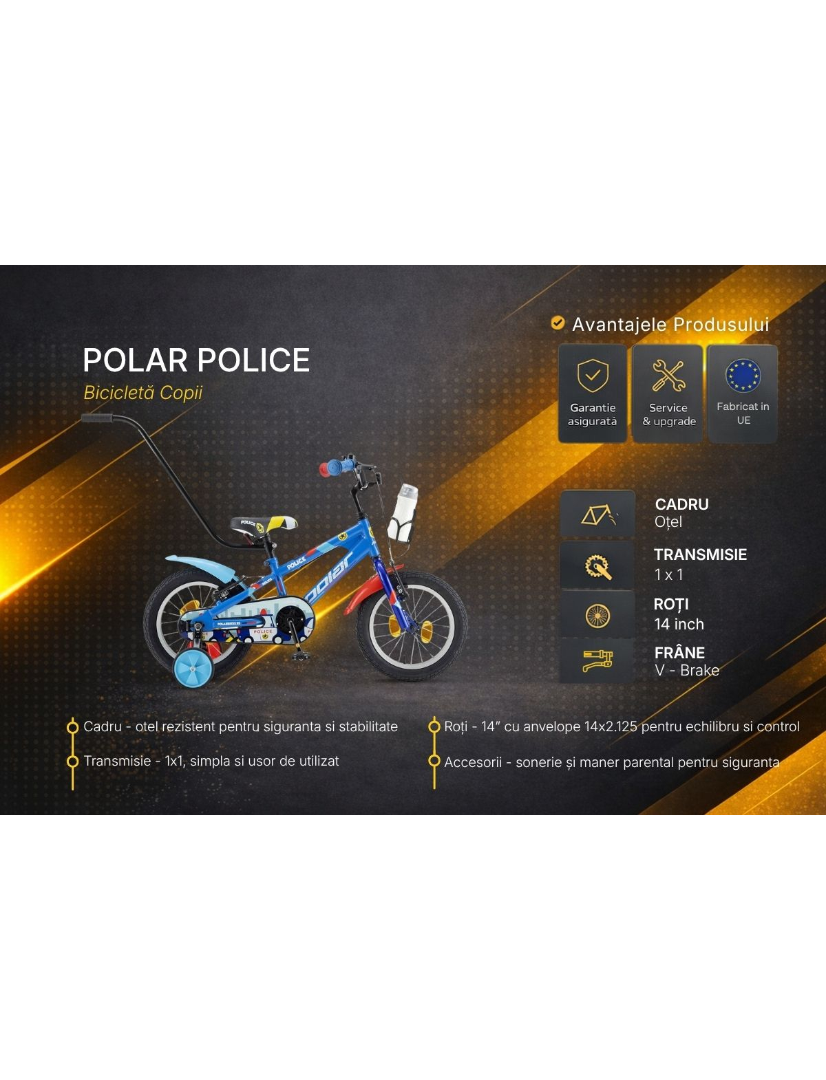 De ce sa alegi Bicicleta Copii Polar Police 14 Inch?