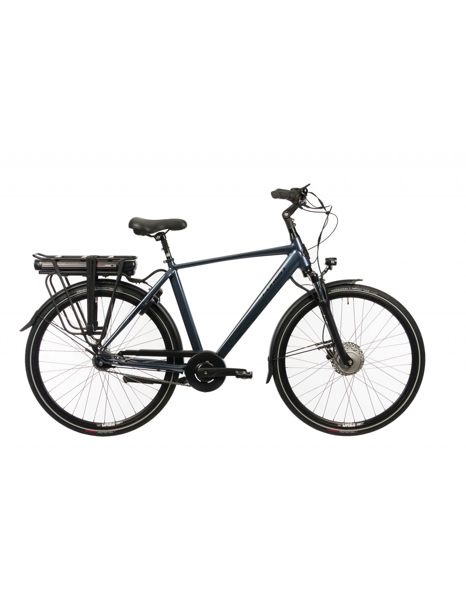 - Bicicleta electrica Corwin 28327 are o echipare de la Shimano, o transmisie 1x7 viteze, frane hidraulice pe disc, o furca de la Zoom si anvelope de 28 inch Vredestein Perfect Tour, Antipuncture, Reflex Line.
