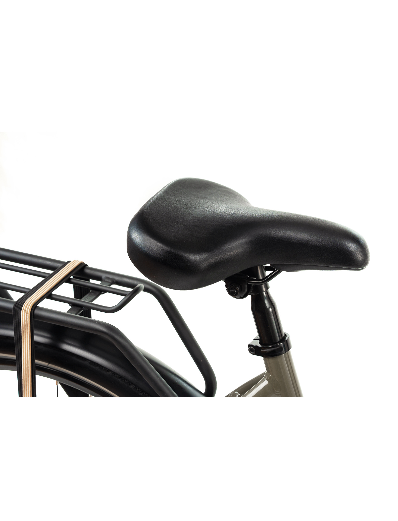 - Cadrul ergonomic step-through din aluminiu, împreună cu furca cu suspensie de 65 mm și ghidonul ajustabil, îți garantează o poziție comodă indiferent de traseu. Roțile de 28 inch cu jante duble din aluminiu și anvelope city brown wall completează stilul modern al bicicletei.