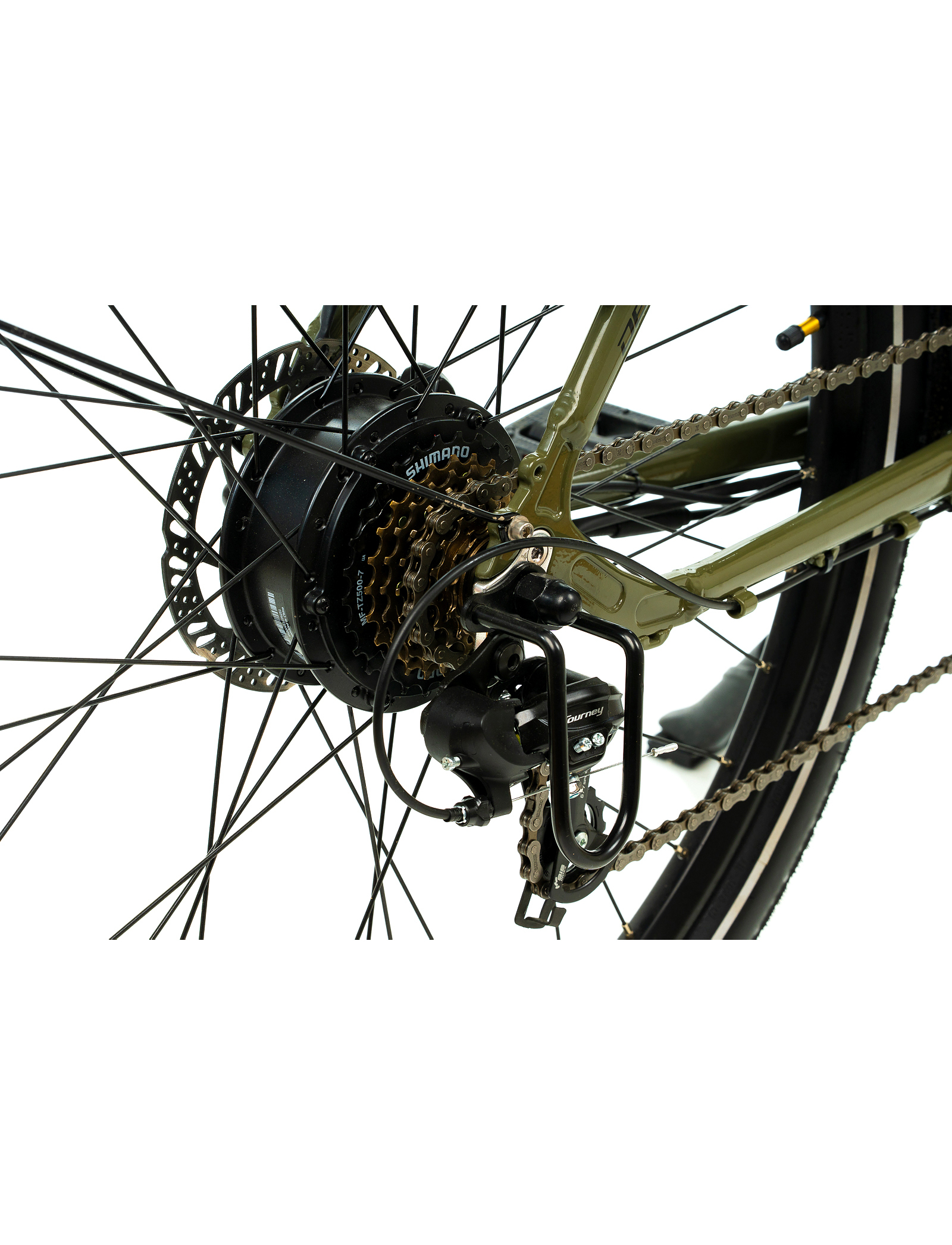 - Performanță excelentă – motor puternic și transmisie Shimano Tourney 7 viteze.
