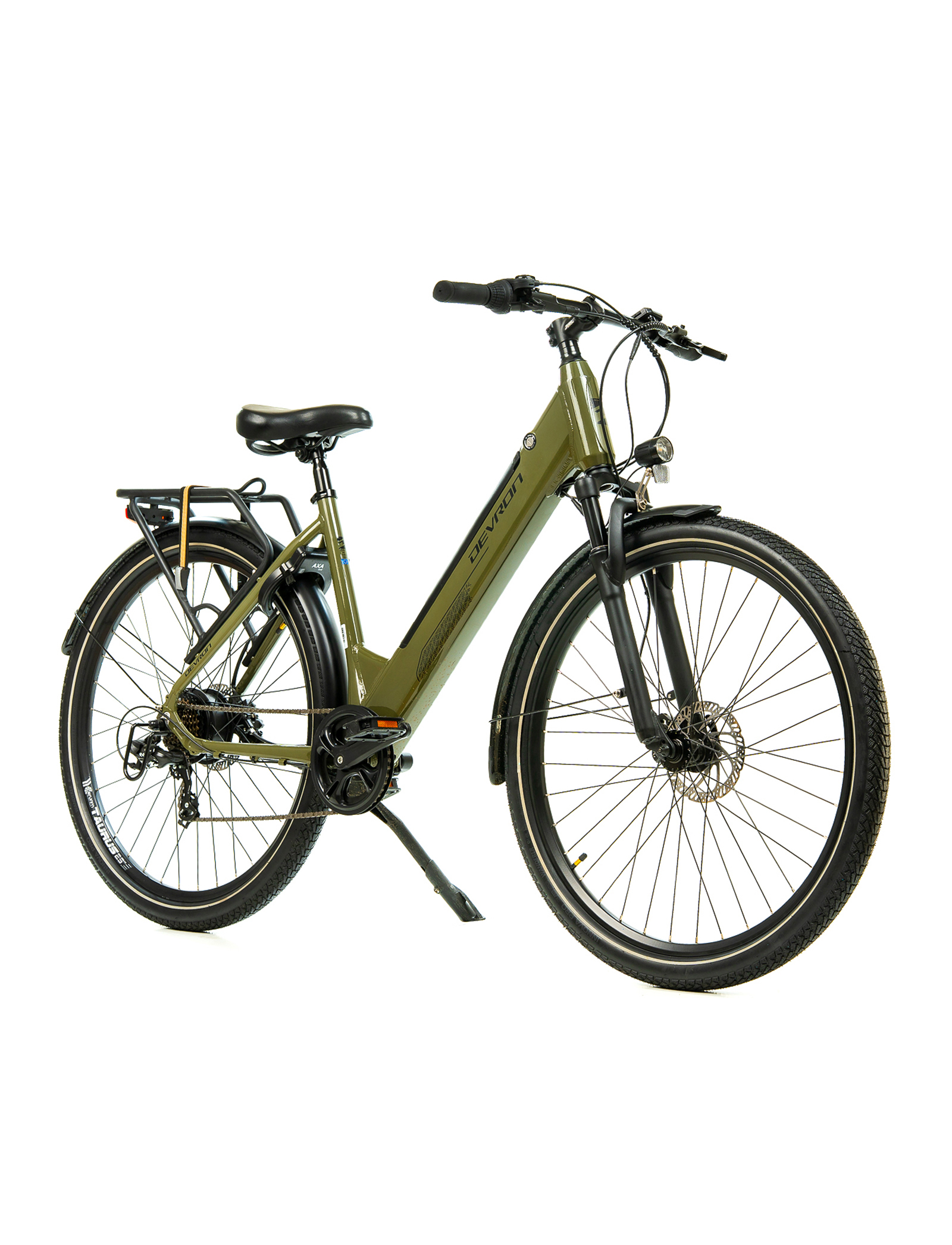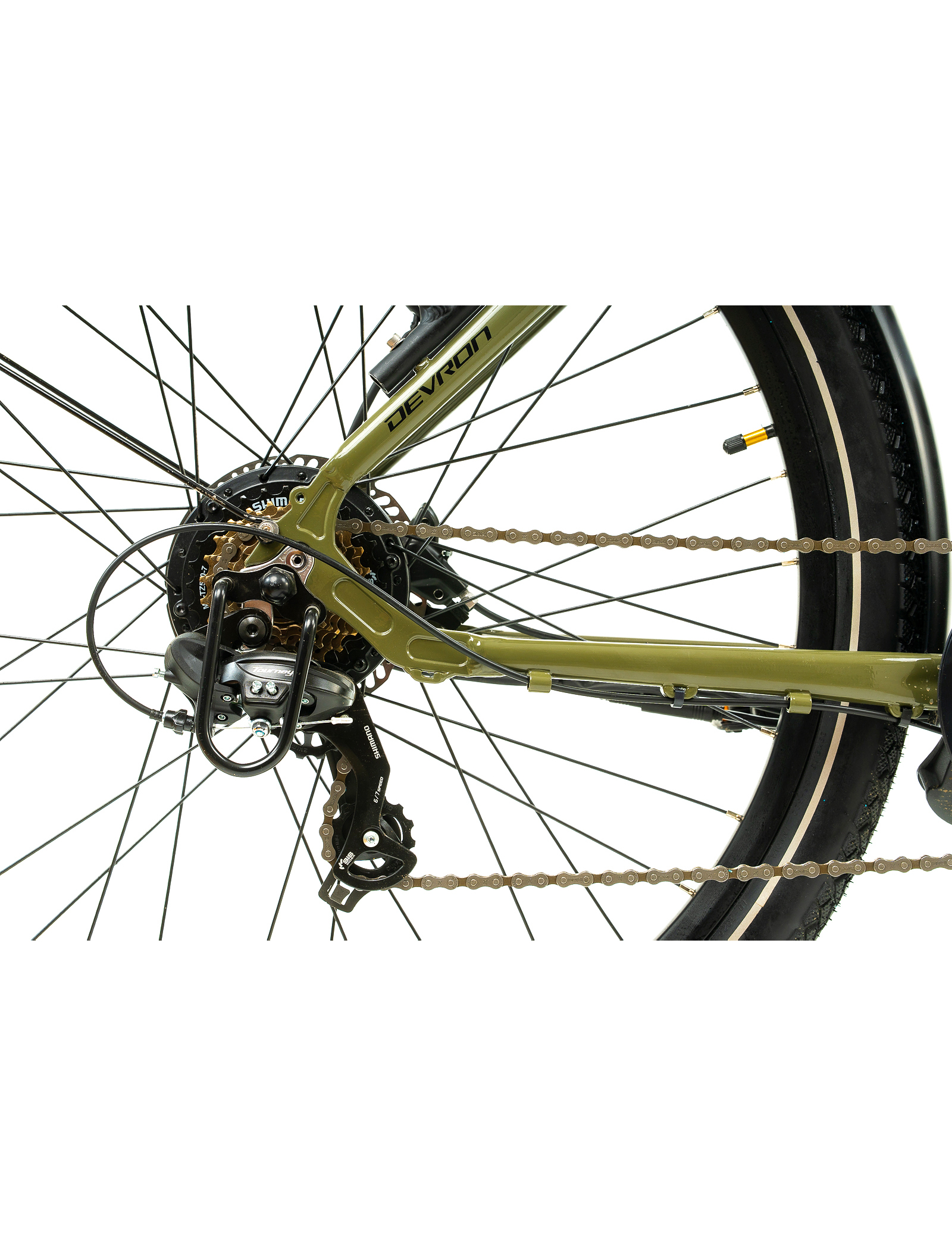 - Echipată cu un motor electric de 36V, 250W, montat pe butucul spate, transmisie Shimano Tourney 1x7 viteze și frâne hidraulice pe disc Shimano MT-200 cu rotoare de 160 mm, Devron 28426RM oferă o experiență de pedalare lină, sigură și controlată.
