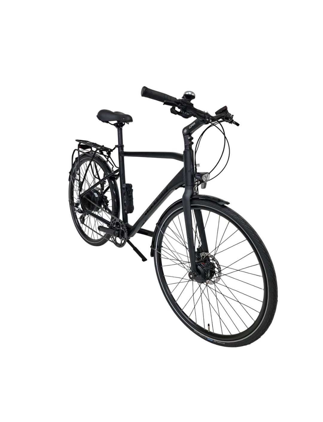 - Complet echipata pentru oras: portbagaj, aparatori, far, stop, cric si sonerie