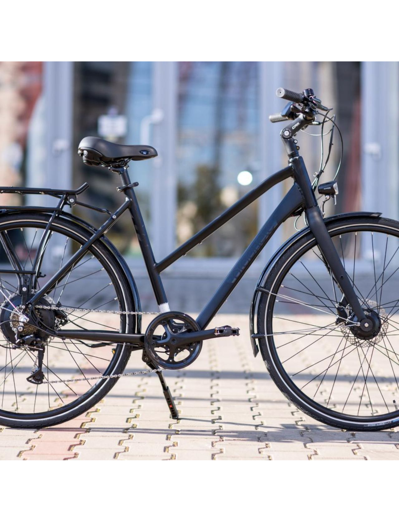 - Complet echipata pentru oras: portbagaj, aparatori, cric, far, stop si sonerie