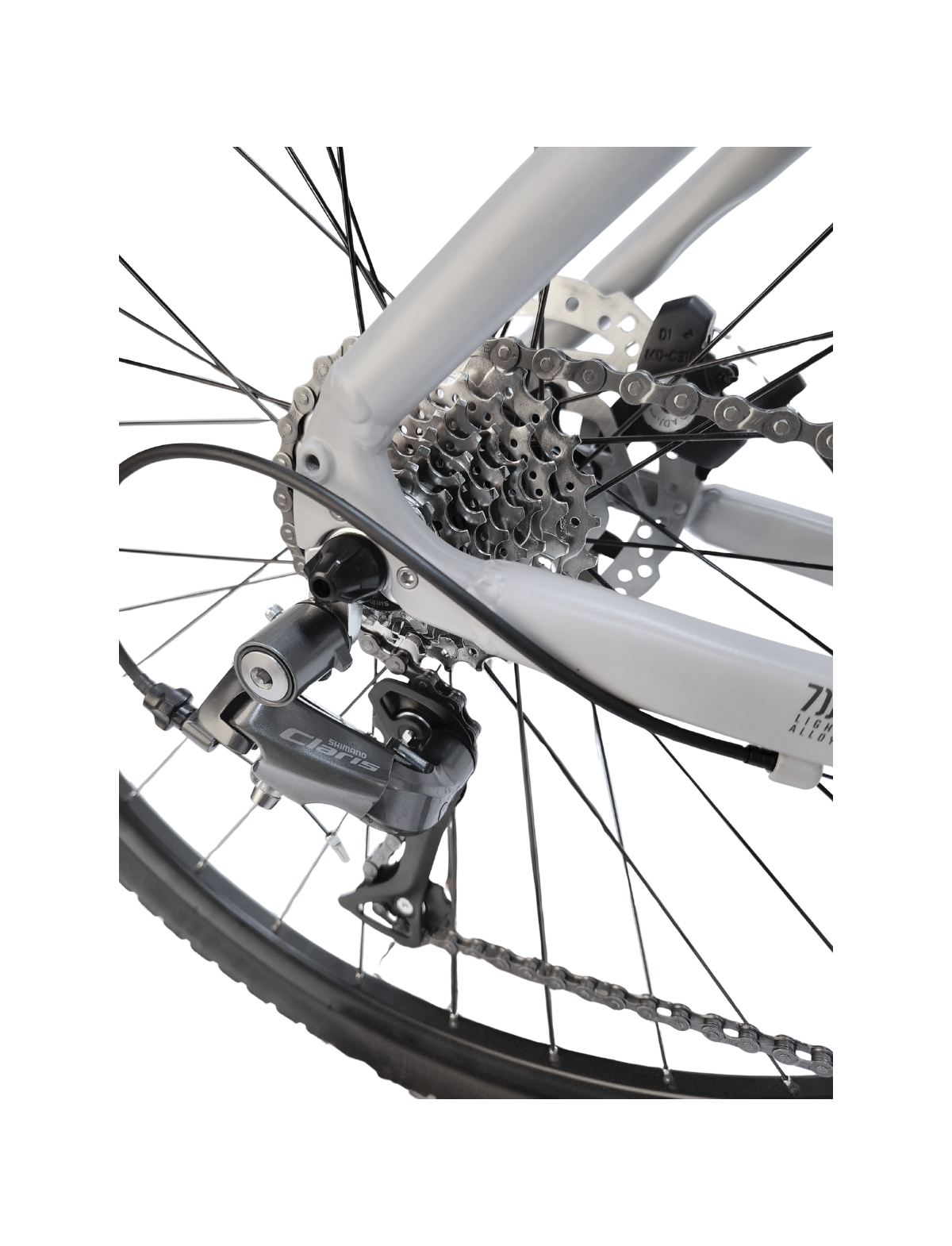 - Transmisie eficienta: Schimbatoare si manete Shimano Claris 2x8 pentru tranzitii usoare intre viteze.