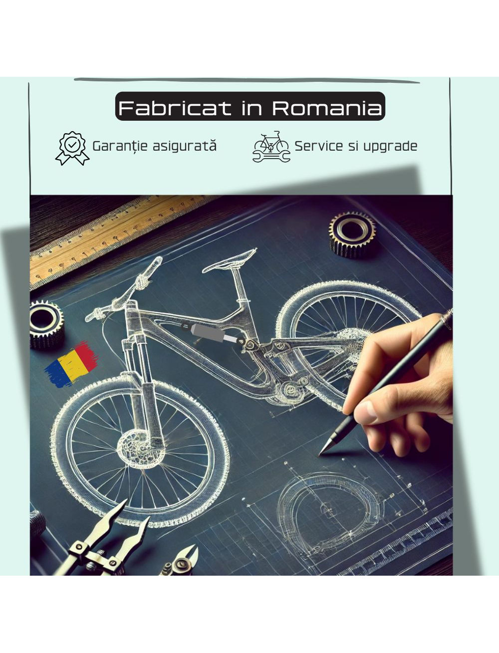 - Cadru din aluminiu: usor si rezistent, perfect pentru trasee dificile