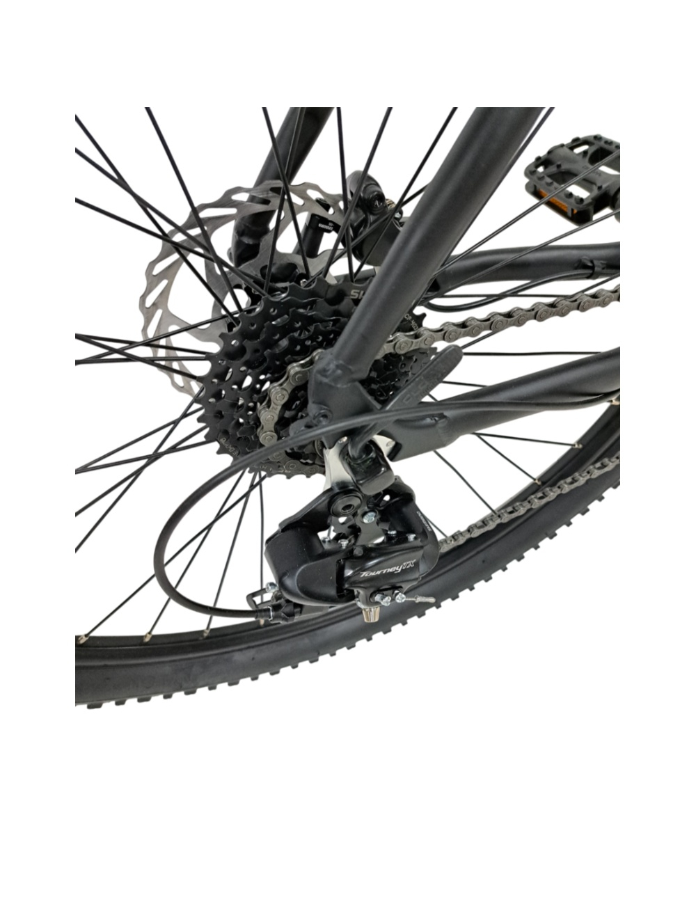 Datorita transmisiei Shimano, bicicleta permite schimbari de viteza rapide si precise. Angrenajul Shimano Altus impreuna cu schimbatorul spate Shimano Tourney TX (RD-TX800) ofera o plaja larga de viteze, ideala pentru urcari, plat si coborari.