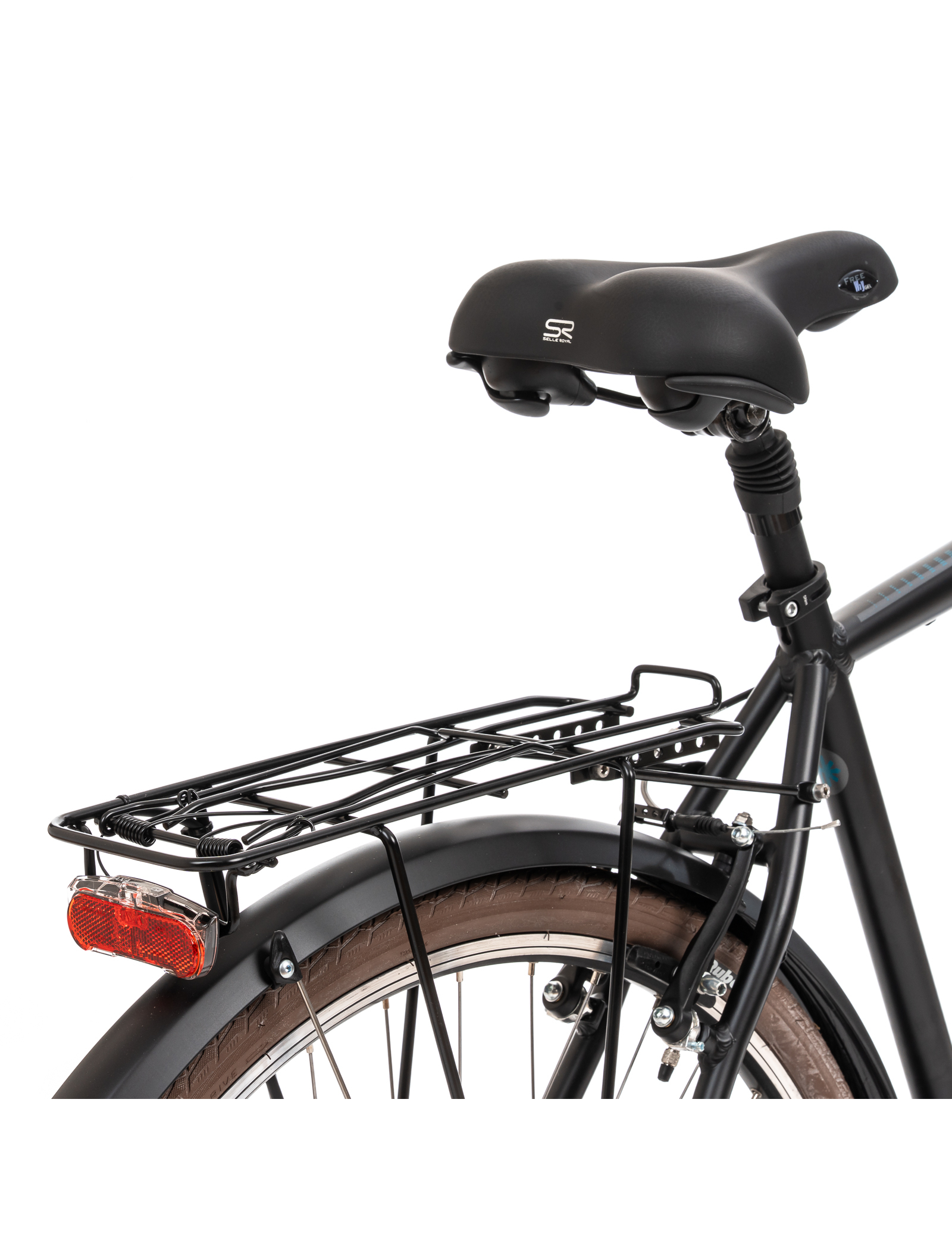Bicicleta este proiectata pentru utilizatorii care doresc un mijloc de transport practic si confortabil in mediul urban. Este echipata cu portbagaj, far si stop alimentate prin dinam, cric, sonerie si aparatori, oferind tot ce ai nevoie pentru drumuri zilnice fara griji. Suspensia de 50 mm si anvelopele Vee Tire asigura o rulare lina, iar transmisia interna Nexus garanteaza schimbari de viteza fluide si intretinere redusa.