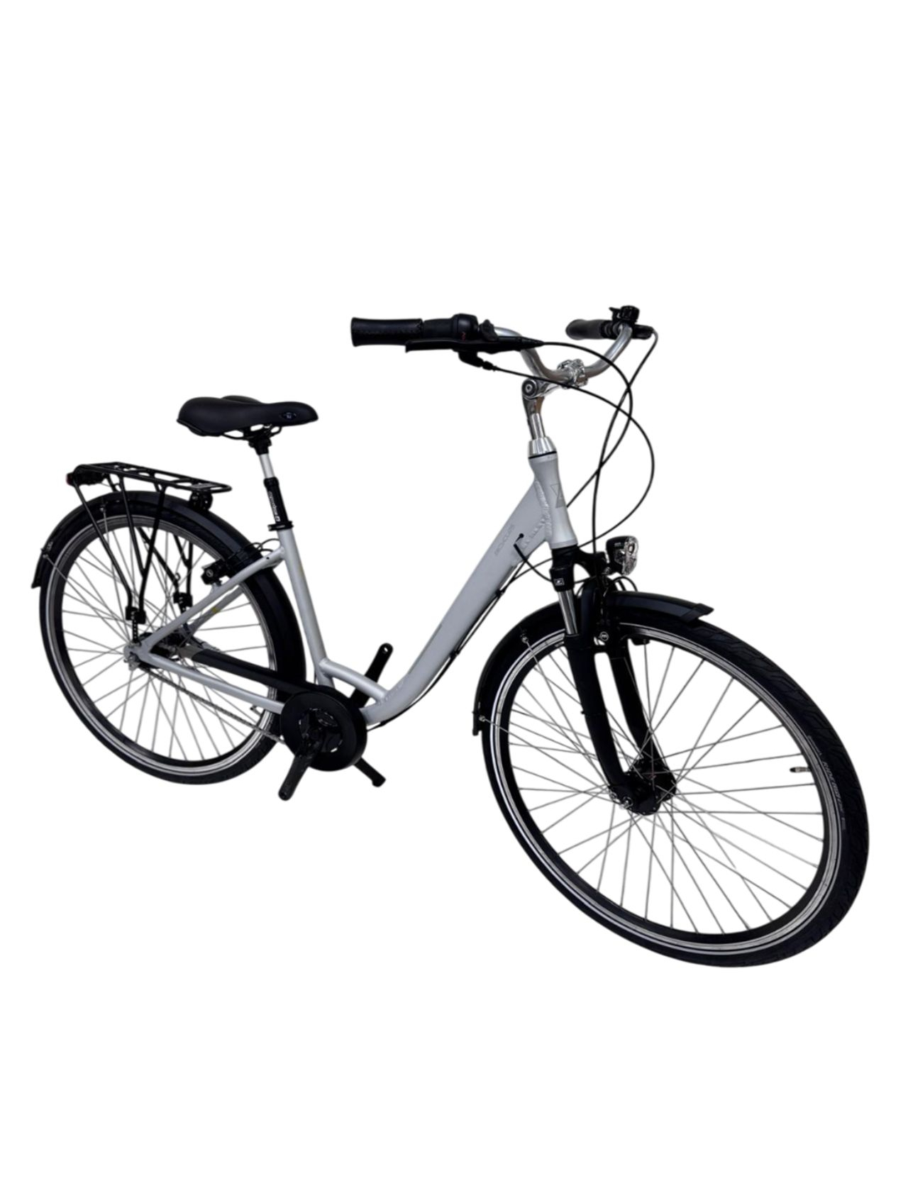 Bicicleta este gandita pentru utilizatorii care isi doresc un mijloc de transport fiabil, complet echipat si cu intretinere redusa. Dispune de portbagaj, far si stop alimentate de dinam, cric, sonerie si aparatori, fiind pregatita pentru orice drum urban. Suspensia de 50 mm si anvelopele Continental Ride City E25 cu reflex aduc un plus de confort si siguranta in trafic.