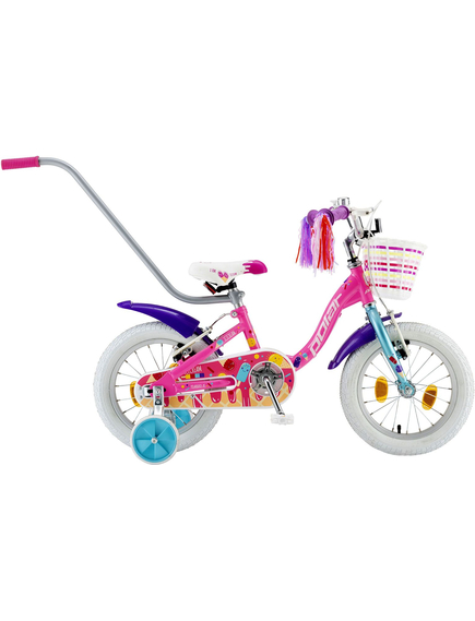 - Dotari incluse: cos, sonerie, roti ajutatoare, reflectorizante roti, aparatoare lant, aparatoare roti, maner de ghidaj pentru parinti.