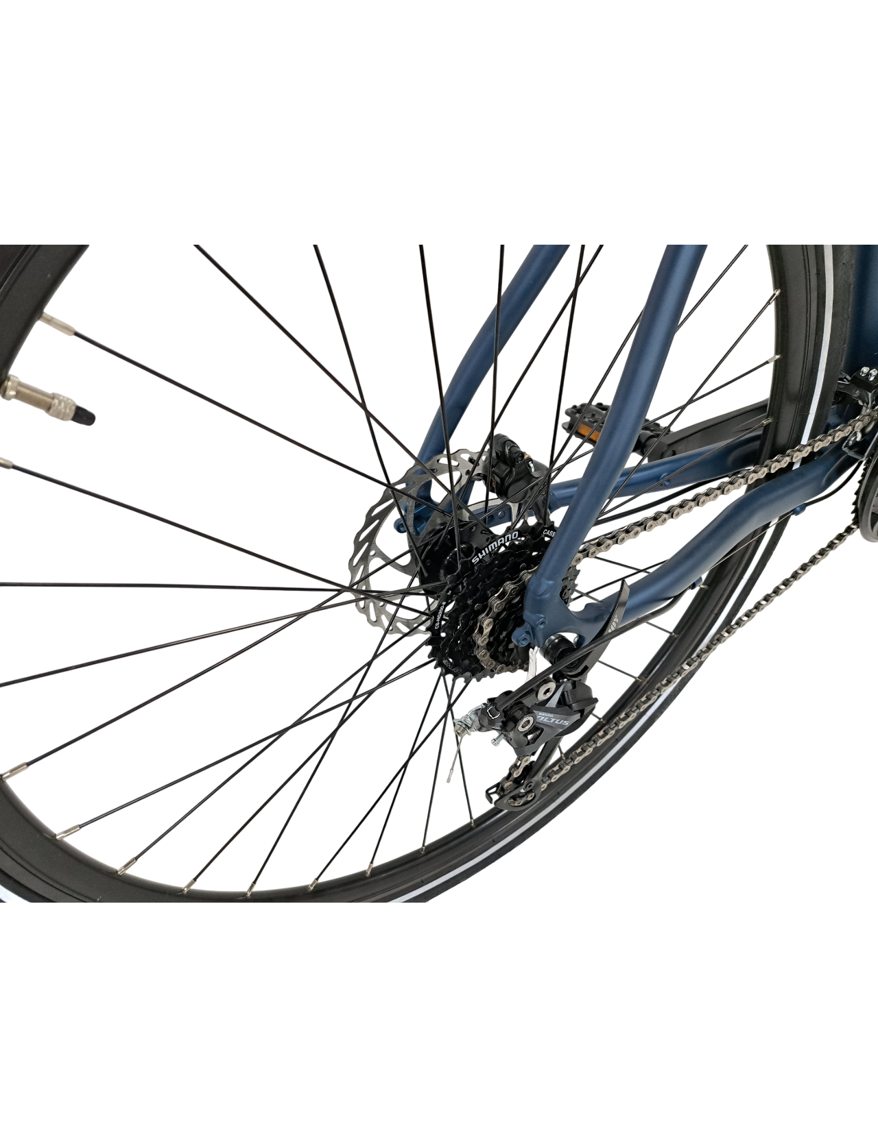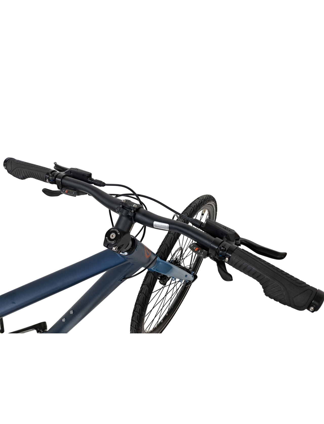 Kreidler Graveler este bicicleta ideala pentru deplasari rapide si plimbari sportive pe sosea sau trasee usoare. Construita pe un cadru usor din aluminiu si echipata cu transmisie Shimano 3x8 viteze, aceasta bicicleta imbina eficienta cu confortul. Franele hidraulice pe disc si designul sportiv in albastru/negru asigura siguranta, control si un aspect modern.