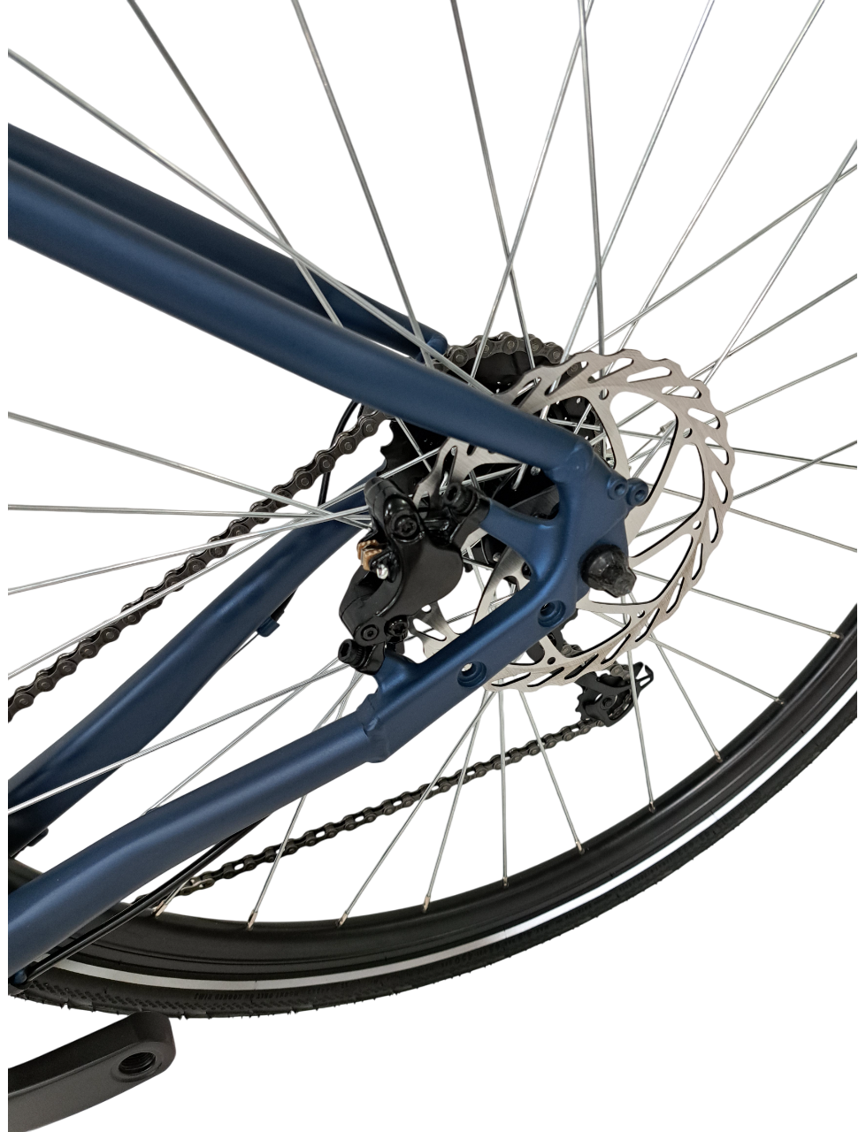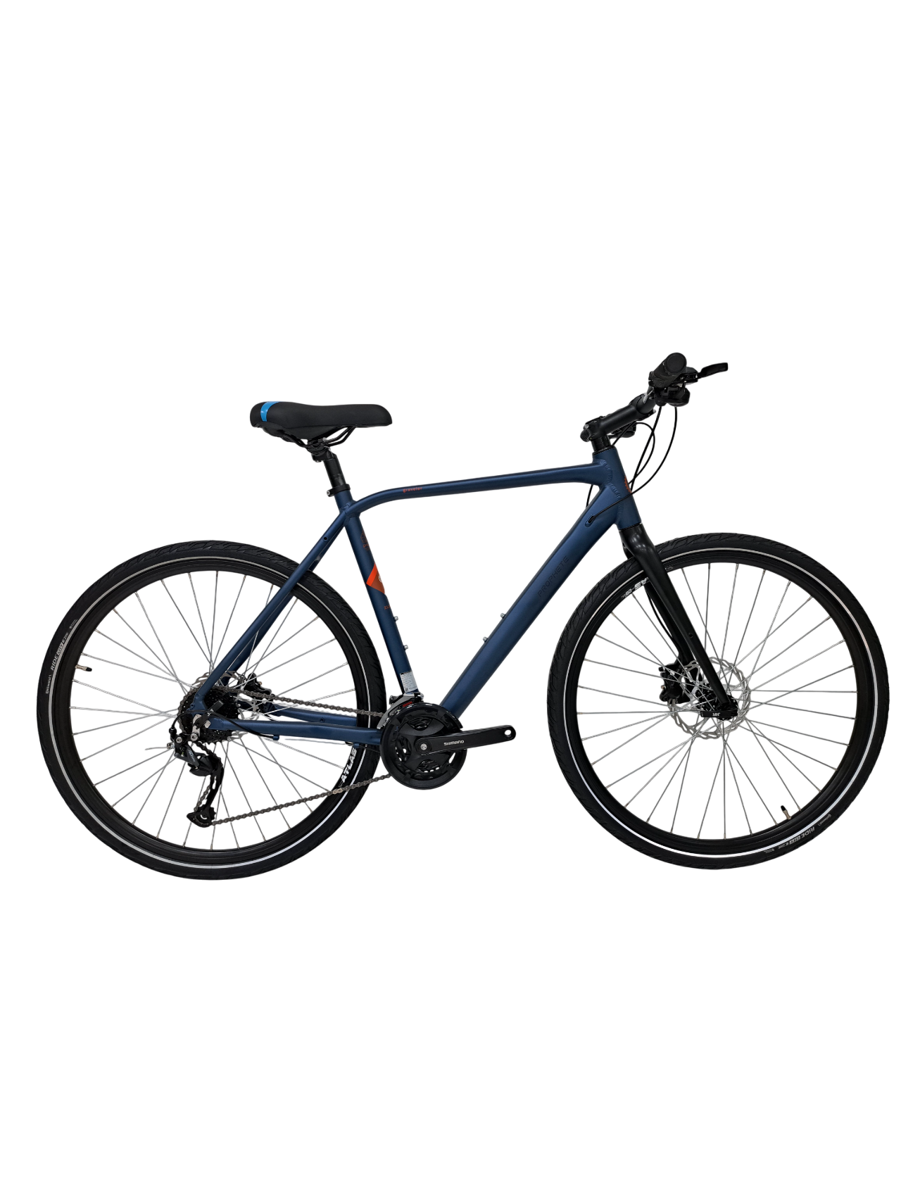 Kreidler Graveler este bicicleta ideala pentru deplasari rapide si plimbari sportive pe sosea sau trasee usoare. Construita pe un cadru usor din aluminiu si echipata cu transmisie Shimano 3x8 viteze, aceasta bicicleta imbina eficienta cu confortul. Franele hidraulice pe disc si designul sportiv in albastru/negru asigura siguranta, control si un aspect modern.