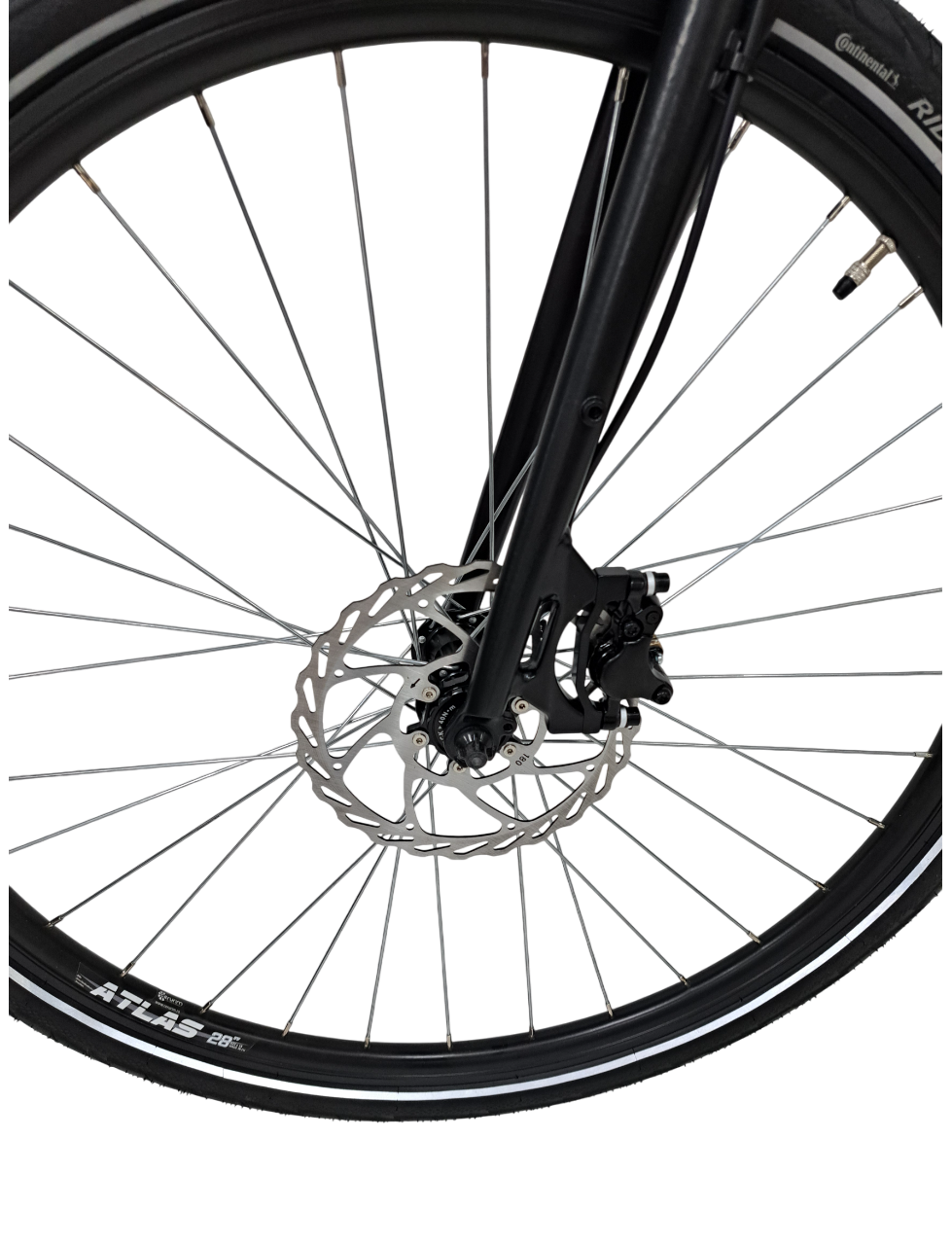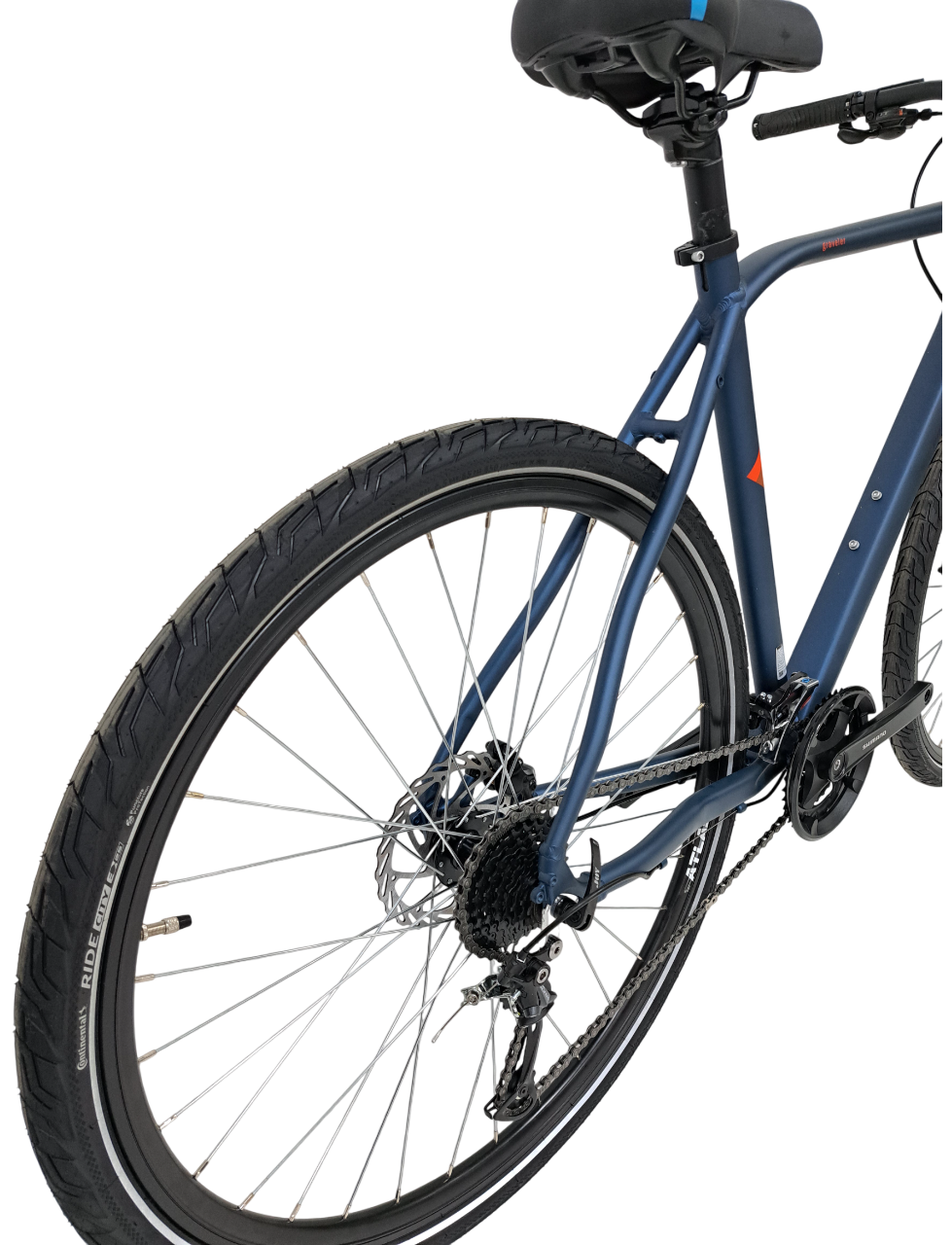 Conceputa pentru barbati activi si pasionati de ciclism urban sau recreativ, bicicleta ofera performanta, rezistenta si confort. Ghidonul MTB lat, furca fixa si anvelopele Continental Ride City cu protectie antipana garanteaza stabilitate si rulare lina in orice conditii.