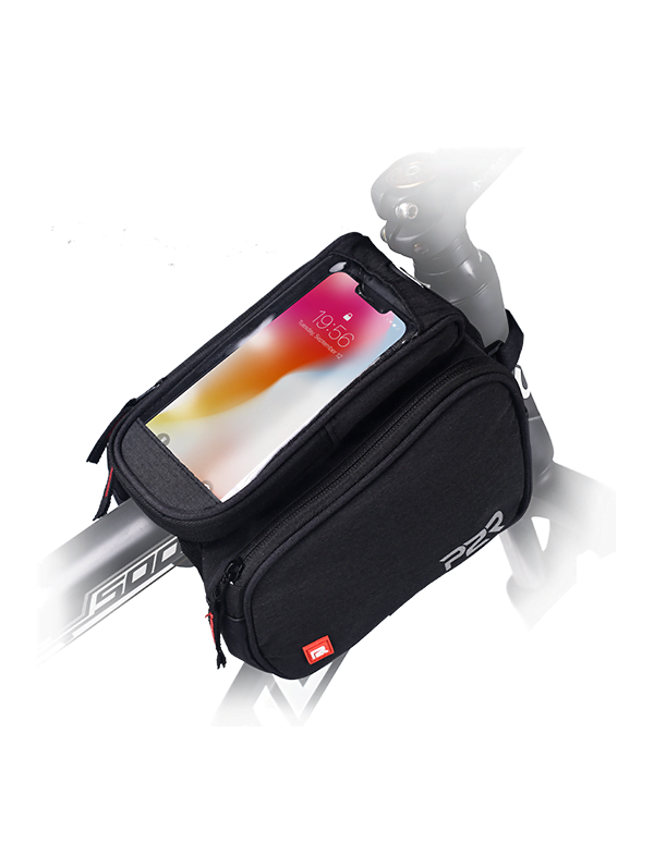 Borseta Cadru Bicicleta P2R TWINNER, cu husa telefon, Negru