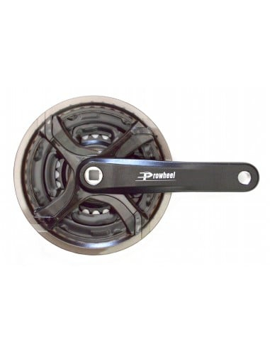 Angrenaj pedalier 42/34/24T, 170 mm, negru este un model robust, conceput pentru biciclete MTB, trekking si city, asigurand un raport de transmisie versatil pentru urcari, teren plat si coborari.