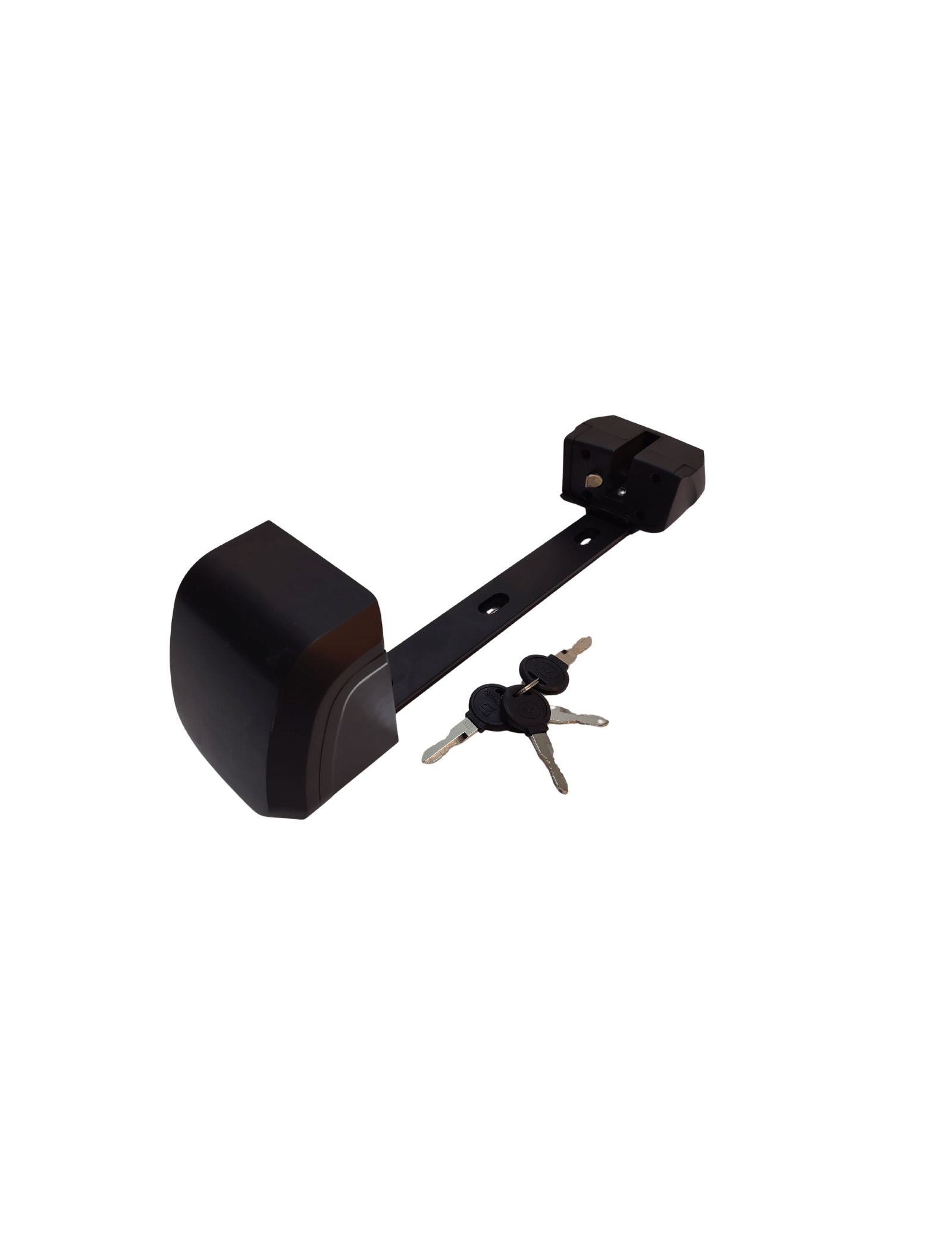 Suportul de baterie pentru modelul SF-06 este echipat cu o cutie integrata pentru controler si sistem de inchidere cu cheie pentru siguranta sporita. Constructia solida si finisajul complet negru ii confera rezistenta si un aspect compact.